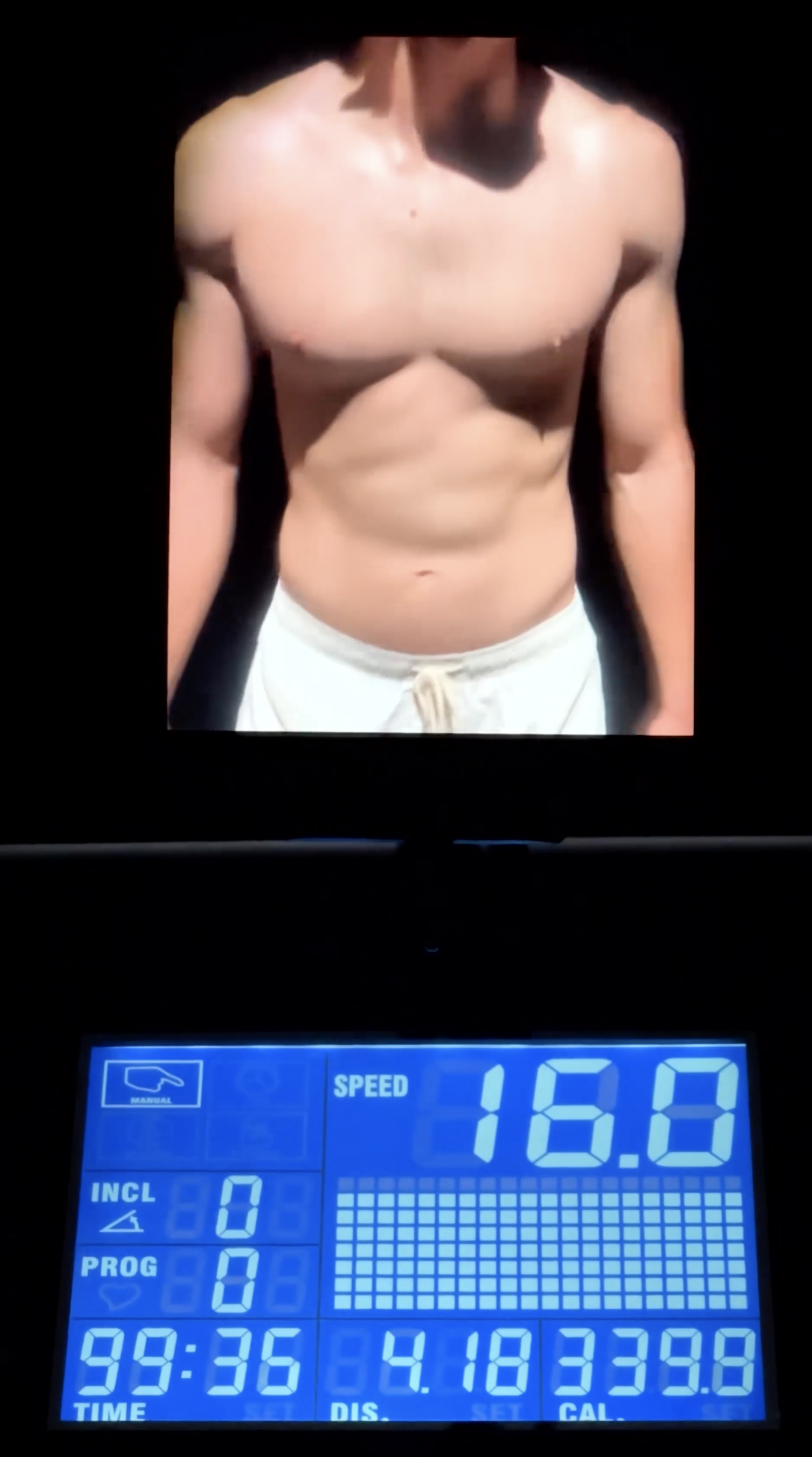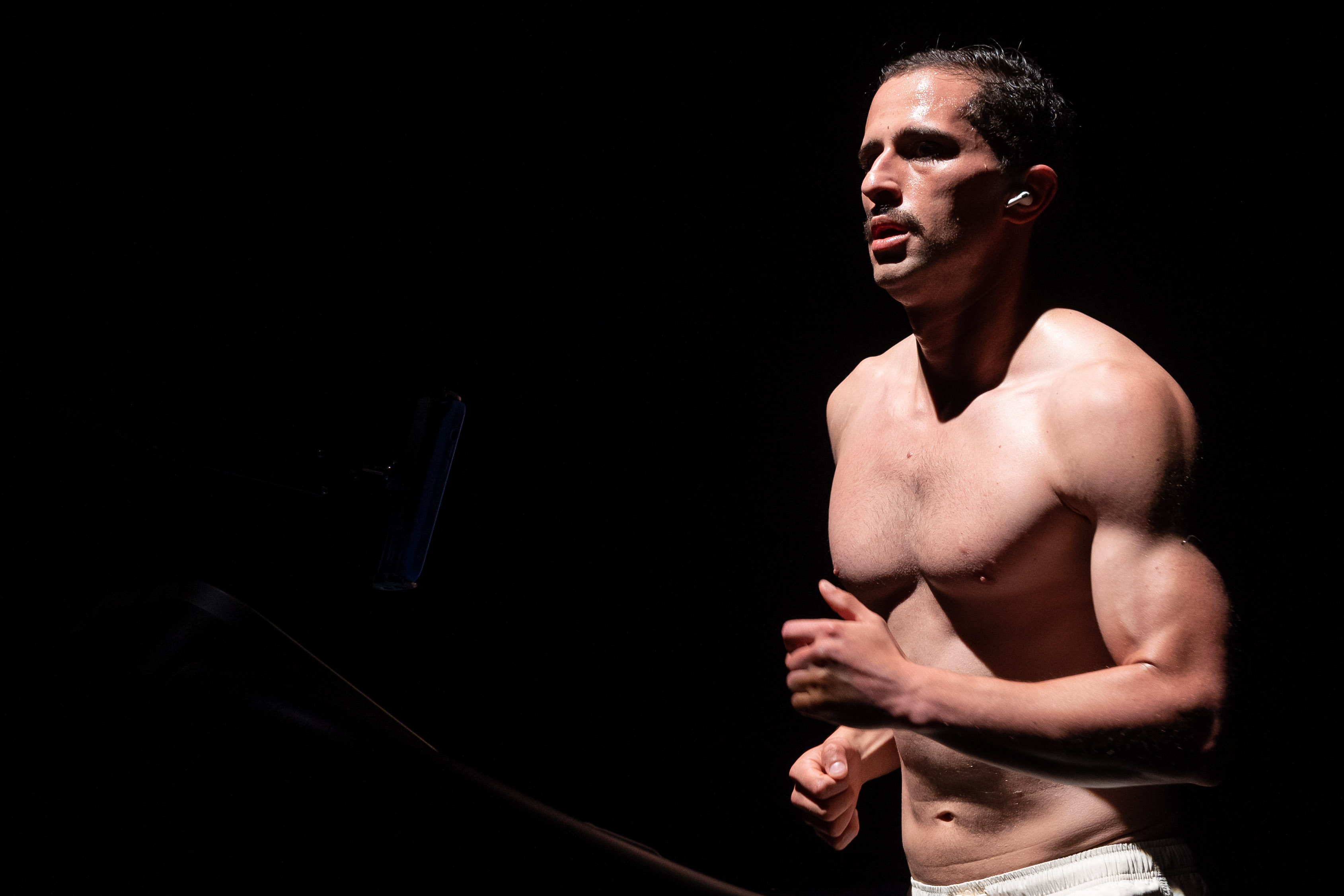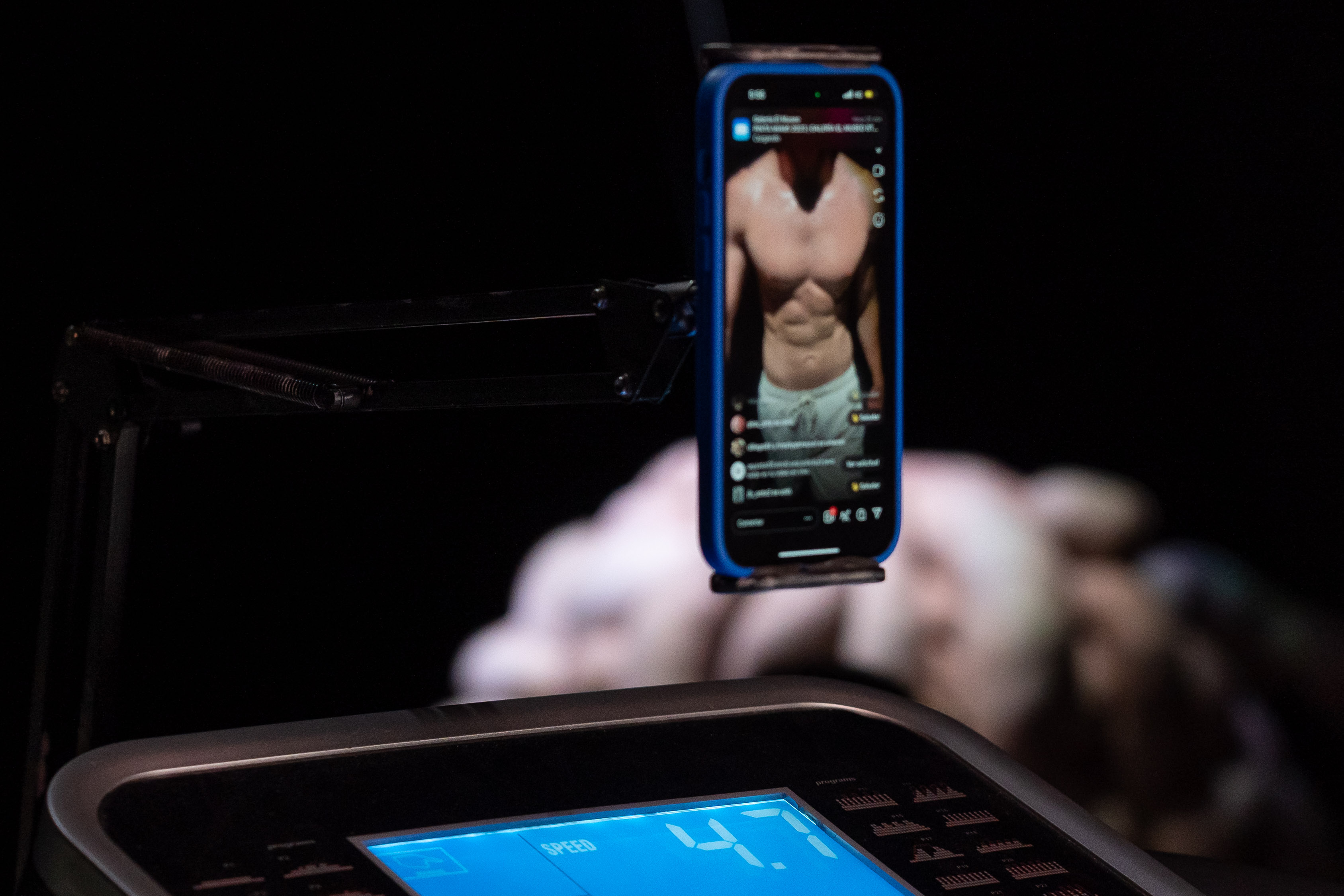 Esta acción presenta a un hombre corriendo sin camiseta a un ritmo intenso durante aproximadamente dos horas, transformándose en una escultura viviente dentro de la exposición. Mientras trota, su torso sudoroso se transmite en vivo en Instagram, enfatizando la despersonalización que sucede en línea y cómo nos presentamos como fragmentos de carne consumibles a través de las vitrinas virtuales que denominamos pantallas. La imagen omite la cabeza del modelo, resaltando la importancia del cuerpo sobre la identidad. Cuando la pieza no está activada por el performer, los visitantes tienen la oportunidad de subir a la cinta de correr y contemplar el torso del modelo.