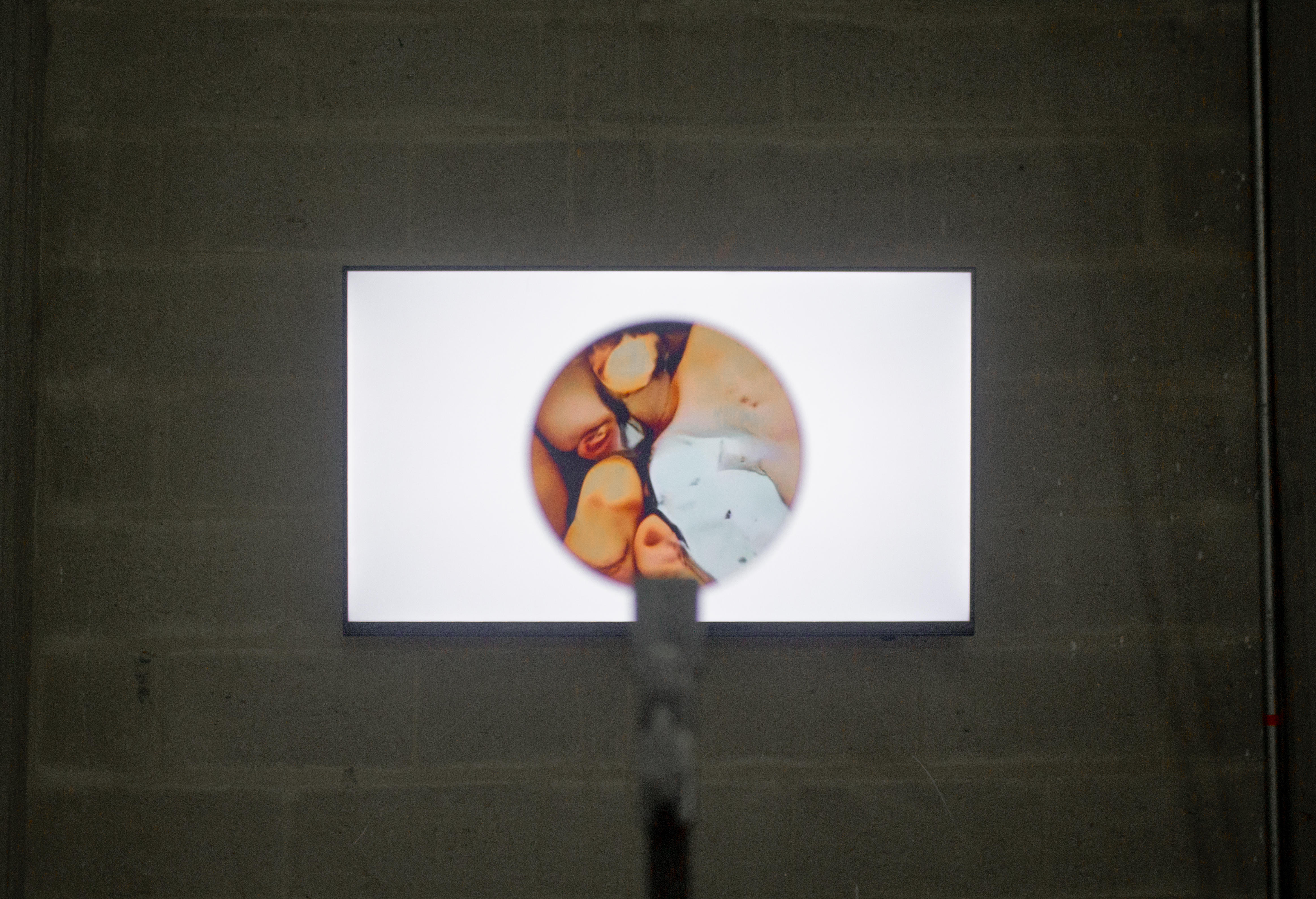 Este proceso colaborativo entre la máquina y el ser humano, que fusiona la construcción algorítmica de imágenes con la intervención experimental de un televisor LCD, transforma la precisión semántica de la pornografía en una abstracción, las poses en posibilidades de interpretación, la alta definición en errores informáticos y la literalidad en un enigma por descifrar.