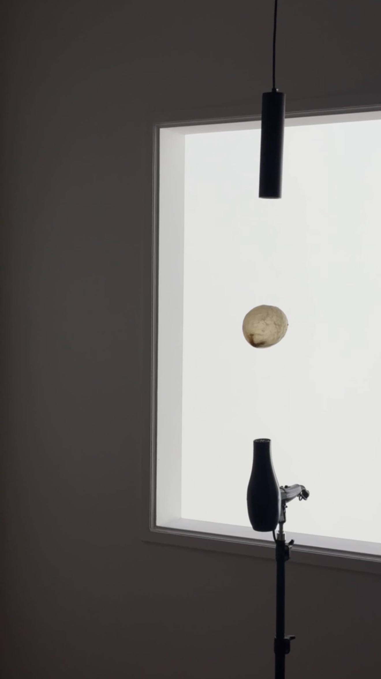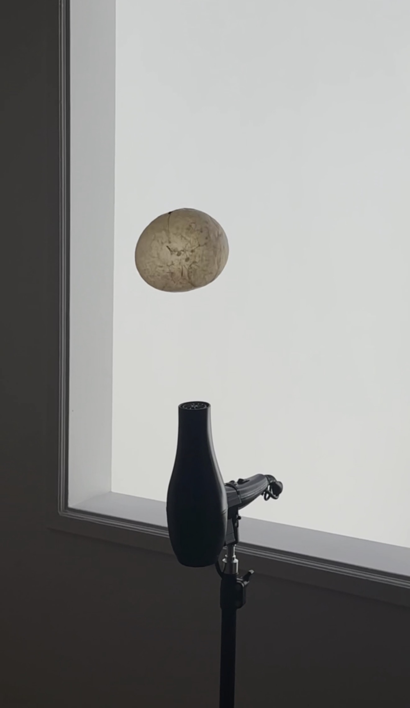 humanos. La esfera resultante está suspendida gracias a una corriente de aire.