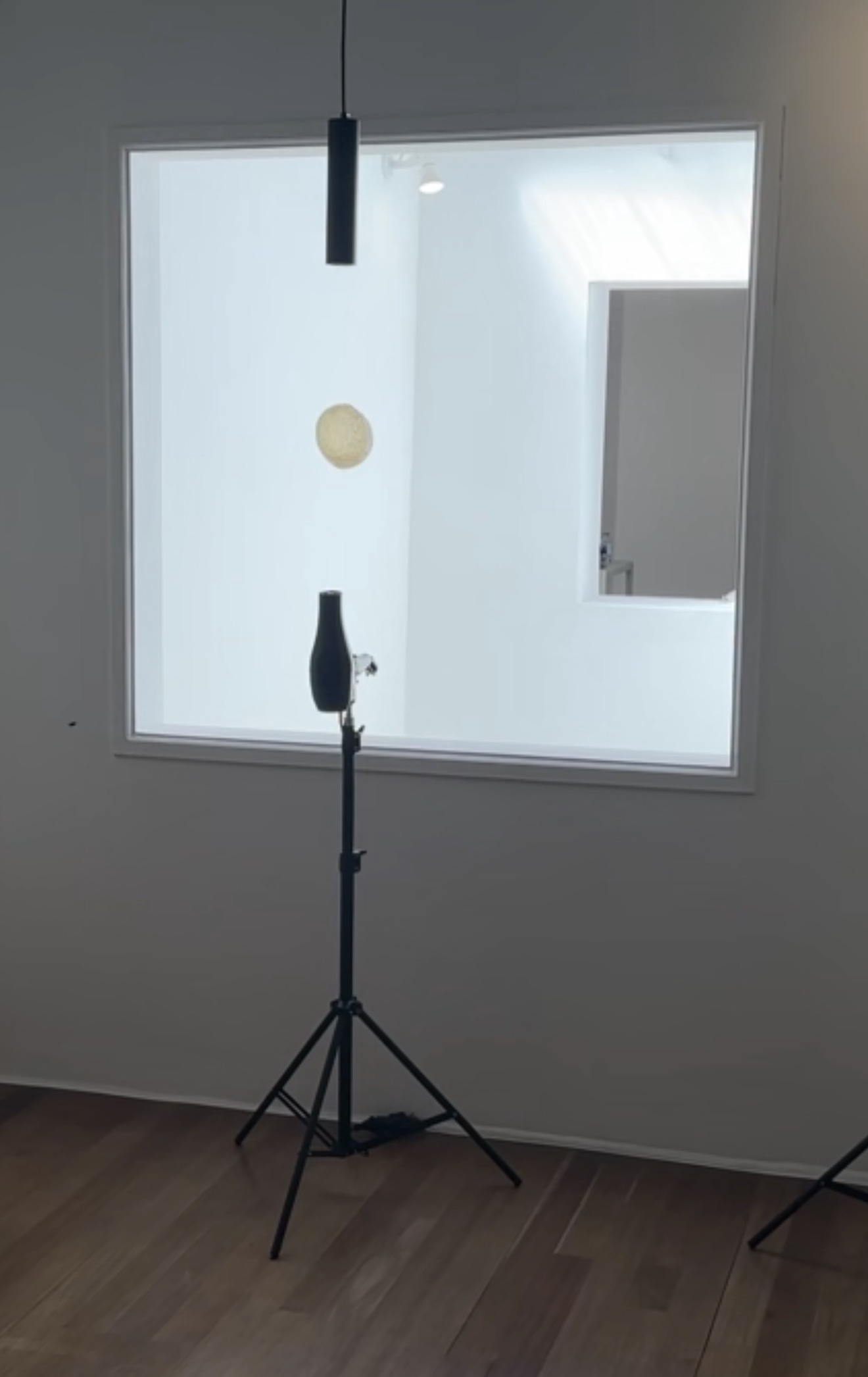 Instalación (vejiga disecada e inflada sobre secador de cabello)